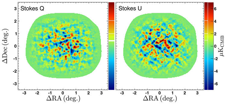 POLARBEAR составил карту углов поляризации с разрешением около трех аркминут, что для сравнения является лишь одной десятой диаметра полной Луны.