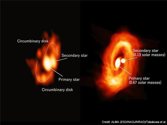 Tomoaki Мацумото, профессор университета Хосэй, который построил теоретическую модель с помощью суперкомпьютера, сказал: "ALMA-наблюдение выявило процесс подачи газа звезде-"близнецу" из окружающего диска".