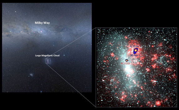 В ходе исследования ученые задействовали систему телескопов HESS. Она состоит из четырех 13-тиметровых телескопов, расположенных в Намибии, Африка. С их помощью ученые сканировали крупнейшие области формирования звезд в пределах БМО. Исследование продолжалось 210 часов, после чего было зафиксировано слабое голубоватое свечение. Каждый фотон исходил от одного их трех упомянутых выше объектов в БМО.