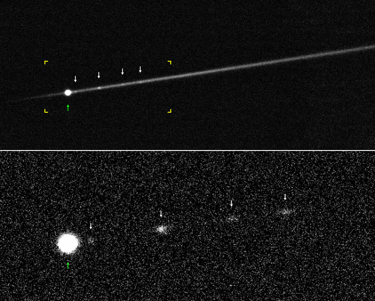 Исследовательская группа во главе с астрономами из Ягеллонского университета, Польша, используя для своих наблюдений оптические инструменты Обсерватории Кека, расположенной на Гавайях, измерили параметры редкого типа «активных астероидов», которые время от времени выбрасывают в космос комки пыли, чем долгое время приводили ученых в недоумение. Исследователи смогли измерить скорость вращения одного из таких объектов вокруг собственной оси и обнаружили, что астероид вращается так быстро, что способен выбрасывать пыль и фрагменты горной породы со своей поверхности в космическое пространство. Эти выброшенные с поверхности космического камня обломки следуют за ним при его движении по Солнечной системе и хорошо видны на полученных исследователями фотоснимках.