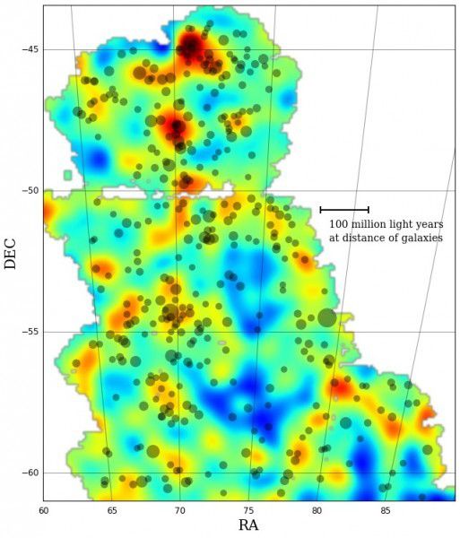При создании представленной вчера карты темной материи ученые использовали ранние наблюдения, проводимые обзором неба DES, и эта карта охватывает лишь 3 % от общей площади, запланированной к изучению при помощи этой научной миссии на ближайшие пять лет. Для составления этой карты ученые проанализировали наблюдаемые искажения очертаний более чем двух миллионов галактик. Обзор неба DES к настоящему времени функционирует уже второй год.