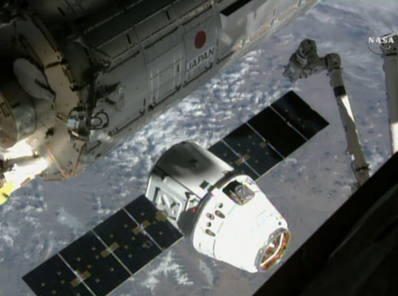 Кристофоретти и остальные пять членов экипажа на борту орбитальной лаборатории скоро начнут разгрузку корабля. Dragon доставил на космическую станцию с Земли 1,950 кг продовольствия, оборудования для научных экспериментов и других припасов. Помимо прочего груз включает в себя первую с истории космическую кофе-машину ISSpresso.