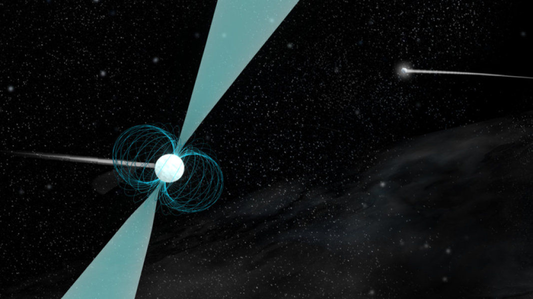 Пульсары представляют собой стремительно вращающиеся сверхплотные останки массивных звезд, взорвавшихся как сверхновые. При вращении пульсаров они периодически излучают из своих магнитных полюсов радиоволны, которые фиксируются на Земле радиотелескопами.