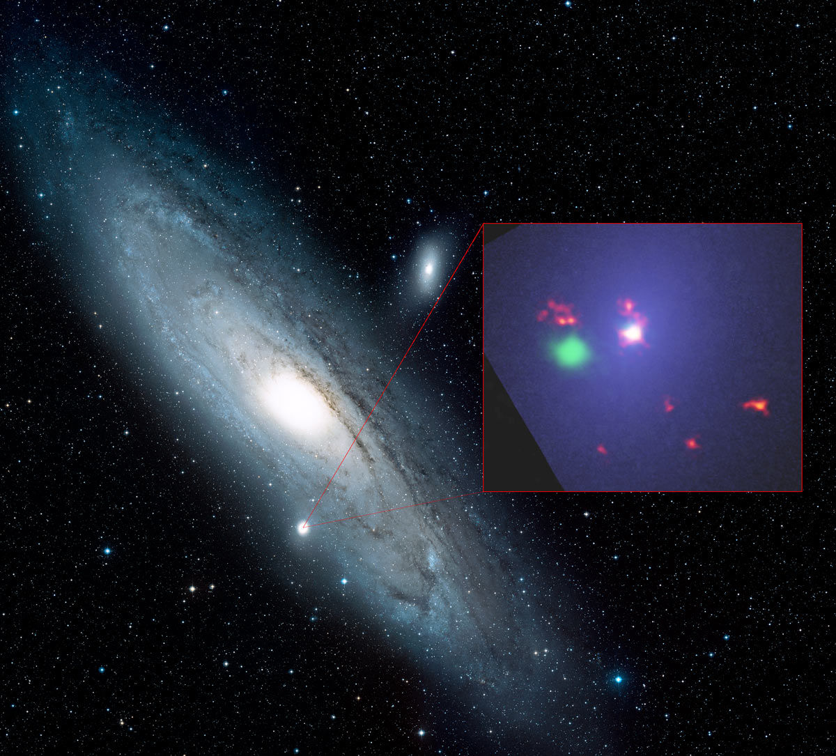 Эта галактика, называемая Мессье 32 (М32), является спутником галактики Андромеда, ближайшего гигантского галактического соседа нашей галактики Млечный путь. В отличие от Млечного пути и Андромеды, которые представляют собой спиральные галактики со звездообразованием, М32 является эллиптической галактикой с очень низким уровнем звездообразования. Эта галактика, находящаяся на расстоянии примерно в 2,5 миллиона световых лет от Земли, намного меньше по размерам, чем Млечный путь или Андромеда.