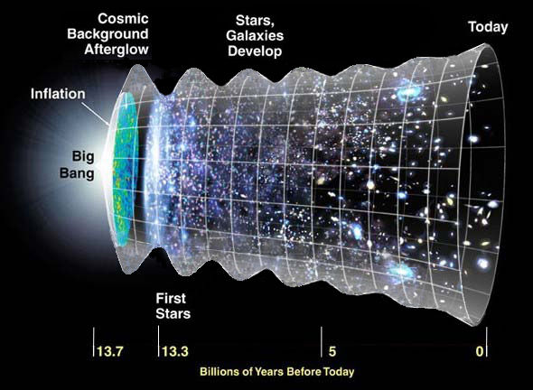 Согласно теории Большого взрыва Вселенная началась с гигантского взрыва и расширялась с тех пор до достижения своего текущего размера. В то же время совместная гравитация всей материи Вселенной, включающей звезды, галактики, газ и таинственную темную материю, стремится замедлить расширение нашего мира и «схлопнуть» его обратно.