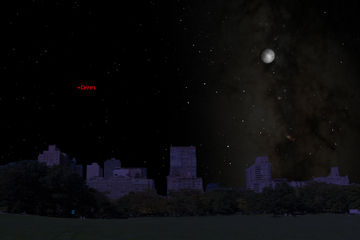 В этом году Церера достигла точки противостояния на стороне Стрельца от границы между Стрельцом и малоизвестным созвездием Микроскоп. Ее легко обнаружить на небе, заглянув в треугольник, который образуют три звезды: 62 Стрельца, восточная звезда в Стрельце; Омега Козерога, южная звезда в Козероге; гамма созвездия Микроскоп, самая яркая звезда в этом тусклом созвездии.