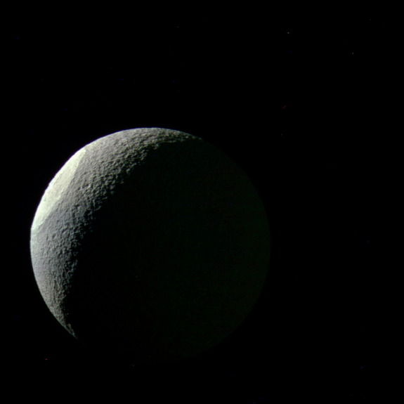 Данный снимок аппарат «Кассини» сделал 9 мая, находясь на расстоянии около 300 000 км от поверхности Тефии. По словам представителей НАСА, разрешение данной фотографии составляет примерно 1,8 км на пиксель.