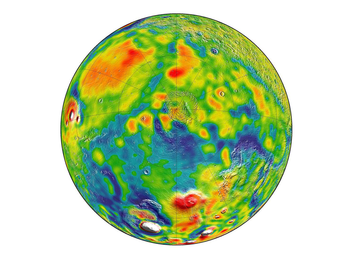 Тщательному изучению подверглась так называемая провинция Фарсида, представляющая собой крупнейшее нагорье вулканического происхождения, которая, как полагают ученые, образовалась в результате изгиба литосферы из-за глобальных климатических катаклизмов, которые происходили когда-то на Марсе. Ее гравитационные свойства также нашли отражение на новой карте от NASA.