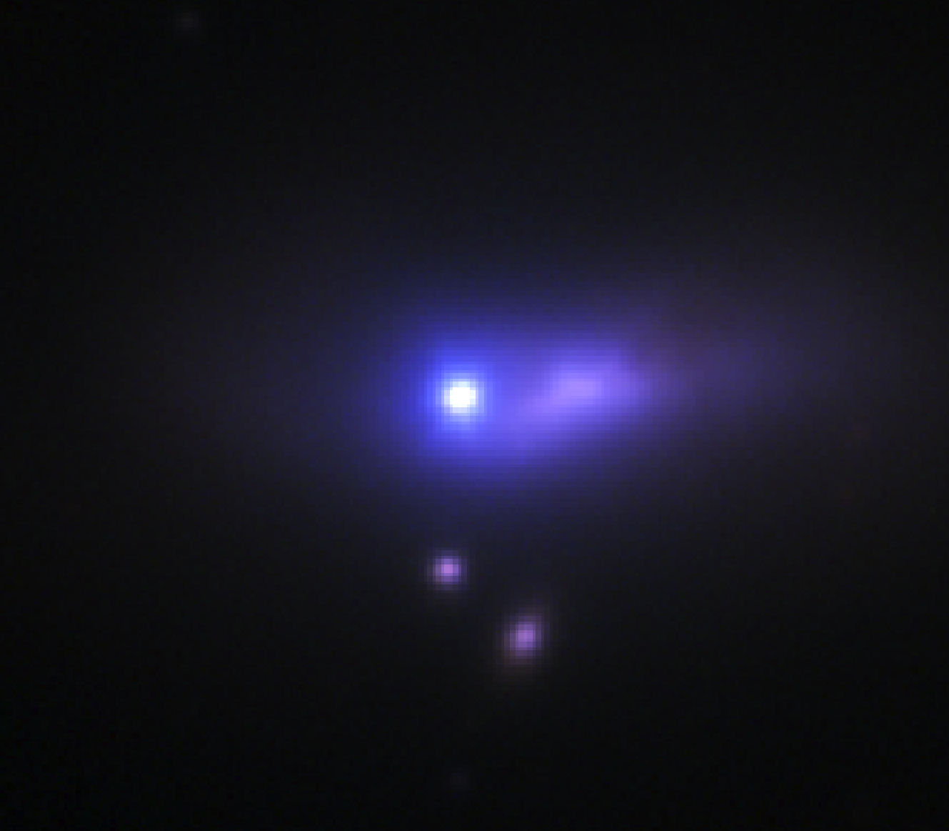 В новой работе исследователи наблюдали сверхновую 2012cg, расположенную на расстоянии 50 миллионов световых лет от нас в созвездии Девы при помощи телескопов Гарвард-Смитсоновского астрофизического центра, США. Астрономы обнаружили голубоватое свечение звезды-компаньона белого карлика (справа от него на снимке), обусловливаемое её нагревом мощным потоком энергии, выделяющимся при взрыве сверхновой. Именно такая картина была ранее предсказана теоретиками при условии реализации сценария с нормальной звездой-компаньоном, находящейся на ранних этапах жизненного цикла.