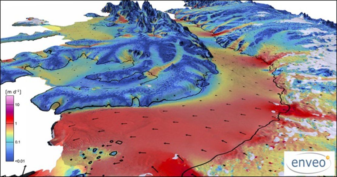 Составив карту движения более чем 30 ледников из этой области, исследователи нашли, что между 1992 и 2016 г. течение большинства ледников ускорялось на 20-30 сантиметров в сутки. Это эквивалентно 13-процентному увеличению скорости течения льдов в среднем по всей области.