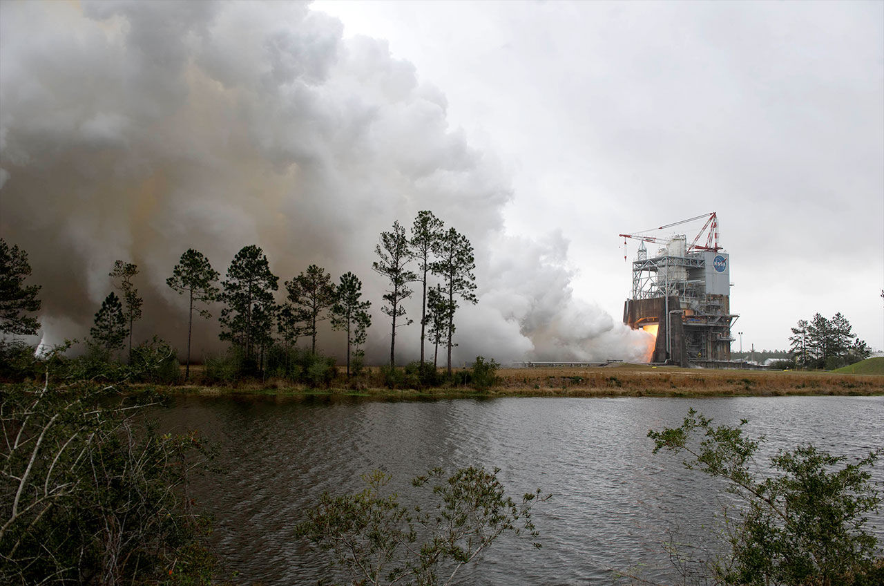 Это восьмиминутное зажигание ознаменовало первое огневое испытание двигателя RS-25, предназначенного для установки на новую ракету НАСА Space Launch System (SLS), которая позволит отправлять пилотируемые миссии для исследования Солнечной системы, включая окрестности Луны и Марса. Четыре таких двигателя, ранее известные как главные двигатели космических шаттлов, будут приводить в движение центральную ступень ракеты SLS.