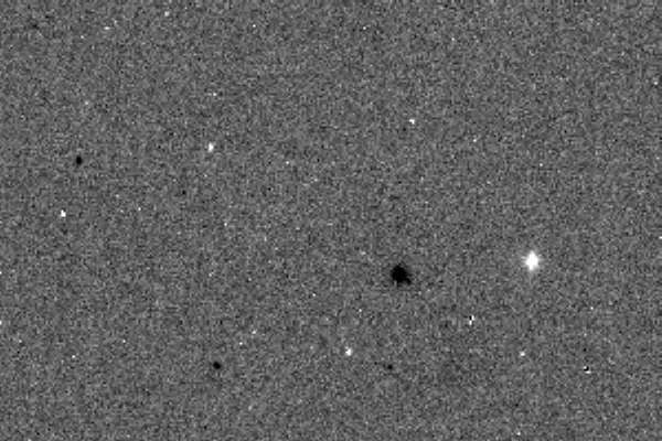 Этот вид (на фото) демонстрирует выбранную случайным образом часть неба, расположенную рядом с южным небесным полюсом. Снимок состоит из двух кадров, сделанных с небольшим смещением направления съемки, что было обеспечено при помощи поворотного механизма камеры. Вычитание одного снимка из другого выявляет несколько одинаково смещенных негативных и позитивных изображений звезд.