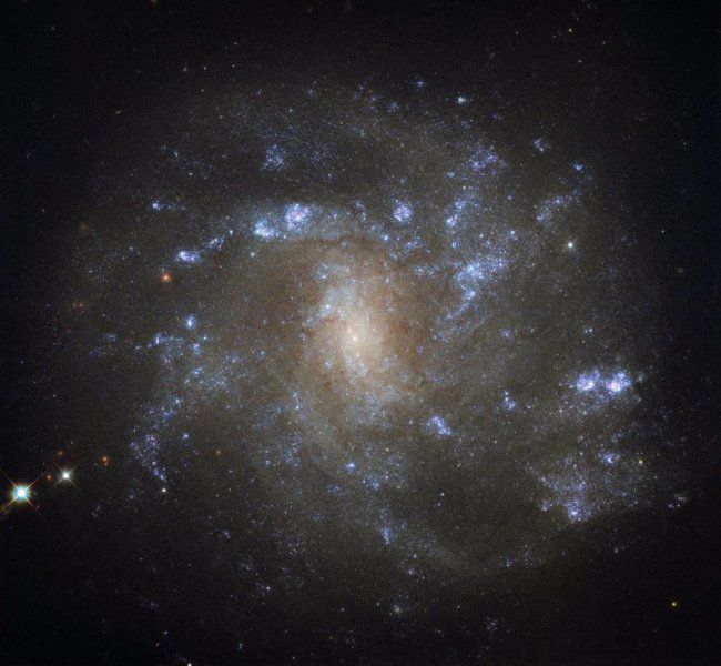 Спиральные галактики с перемычкой на самом деле более широко распространены, чем считалось ранее. Примерно две трети от числа всех известных спиральных галактик – включая Млечный путь – демонстрируют эти продолговатые перемычки, проходящие через центр галактики. В этих космических структурах происходит активное звездообразование, а также через них к активному ядру галактики перетекает материал с периферии. В галактике NGC 2500 до сих пор интенсивно протекает звездообразование, хотя этот процесс протекает весьма неравномерно. Снимок показывает, что в верхней части галактики – где спиральные рукава очерчены более четко – расположено значительно больше звездообразовательных областей, наблюдаемых как яркие островки, по сравнению с нижней половиной.