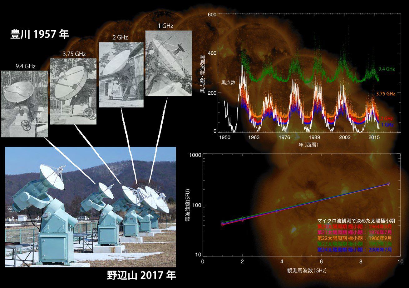 Исследовательская группа под руководством Масуми Шимоджо (Masumi Shimojo), ассистент-профессора Чилийской обсерватории Национальной астрономической обсерватории Японии, проанализировала более чем 60 лет наблюдений Солнца в микроволновом диапазоне. Ученые нашли, что интенсивности и спектральный состав излучения, испускаемого Солнцем в периоды минимумов активности, связанных с 11-летним циклом активности нашего светила, оставались примерно постоянными при переходе от одного цикла к другому. В то же время в максимумах солнечной активности эти величины менялись от цикла к циклу.