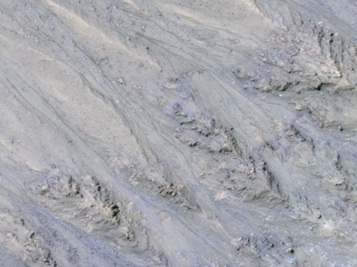Темные полосы на поверхности Марса, прежде рассматриваемые как доказательство подповерхностного течения воды, в новом исследовании интерпретируются как потоки песка и пыли, скольжение которых по склону приводит к формированию темных образований, не имеющих ничего общего с сочащейся из-под поверхности водой.