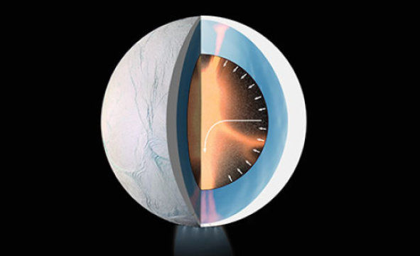Тепло, выделяемое за счет трения горных пород, вызываемого приливными силами, может обусловливать гидротермальную активность спутника Сатурна Энцелада. Этот сценарий основан на предположении о том, что Энцелад имеет пористое ядро, внутрь которого имеет возможность просачиваться вода из подповерхностного океана Энцелада. Пропитав пористое ядро, вода разогревается в нем под действием рассеиваемой в ядре энергии приливных сил. Это демонстрирует новая модель, построенная учеными миссии НАСА/ЕКА Cassini («Кассини»).