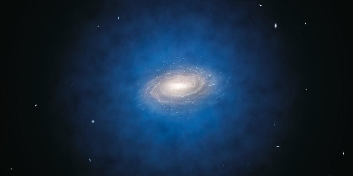 Темная материя в галактике простирается далеко за пределы области, в которой находятся звезды, формируя так называемое гало темной материи. В то время как звезды в галактике вращаются в форме правильного диска, частицы темной материи, скорее, напоминают рой пчел, движущихся хаотично в произвольных направлениях, что помогает им пребывать в «раздутом» состоянии и не сближаться под действием гравитации.