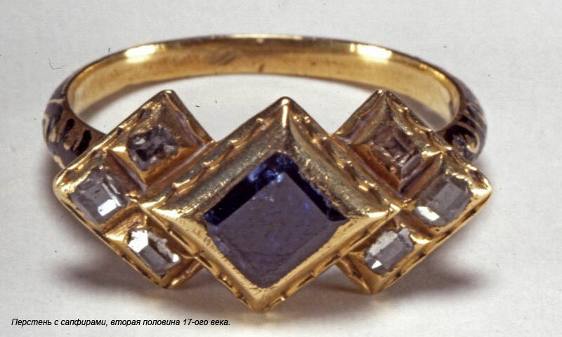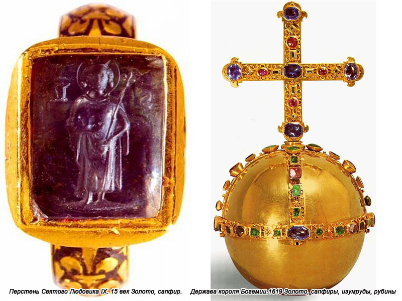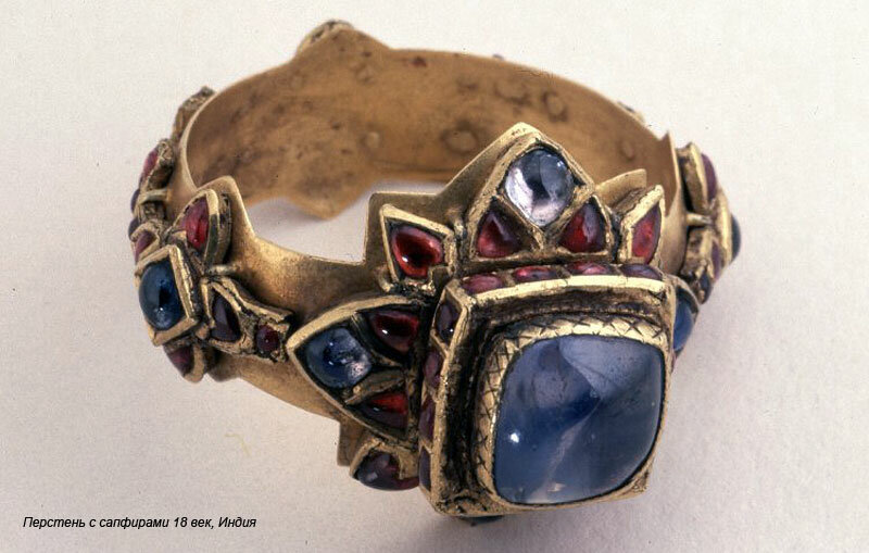 Англичанин Д. Горсей при посещении Московии был ознакомлен с сокровищами царского двора и передает слова Ивана Грозного о сапфире: "Я особенно люблю сапфир, он сохраняет и усиливает мужество, веселит сердце, приятен всем жизненным чувствам, полезен в высшей степени для глаз, прочищает их - удаляет приливы крови к ним, укрепляет мускулы и нервы". Борис Годунов, большой любитель самоцветов, также особо любил камни синего цвета и предпочтение отдавал сапфиру: из числа всех известных драгоценных камней он обладает большей таинственной силой, наибольшим перечнем "полезных" свойств.