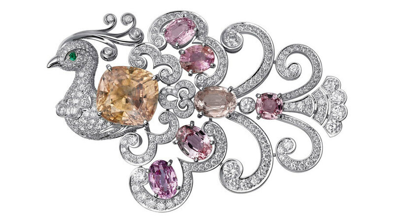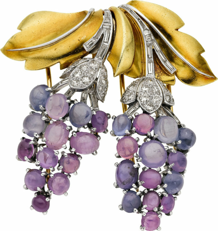 Картье. Брошь с бриллиантами, сапфирами , изумрудом.