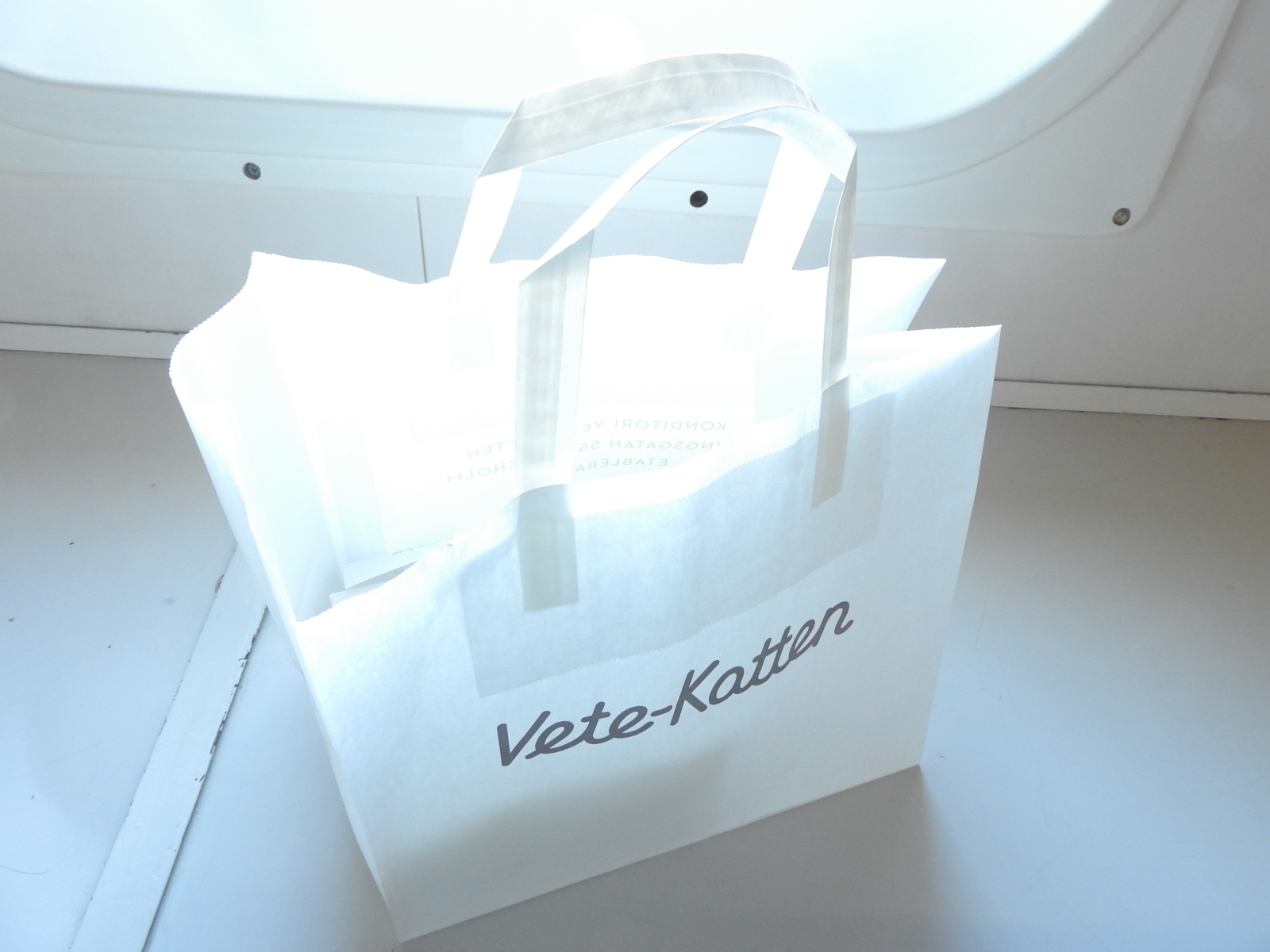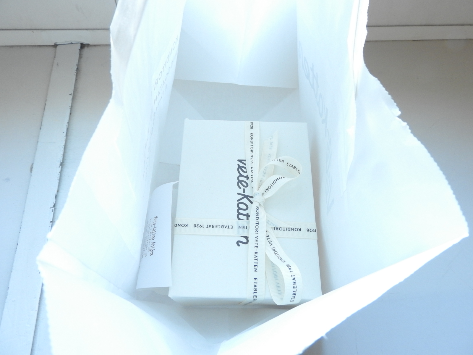 Дальше я зашла в Фабрик купить сэндвич и булочку с собой. Кстати, не, не Вольчек, дорого и не особо вкусно. Заглянула в Вете - Принцесса появилась, но времени рассиживаться уже не было, особенно после супа. В расстройстве я дошла до Ти-Сентрален, и уже купив билет в метро, решила заглянуть в Ику - нет ли там чего, а рядом была кафейня Оленса и там Принцесса, я попросила кусок с собой, и девушка пошла укладывать его в коробочку и когда принесла её, завязанную красивой ленточкой, я увидела, что это кофейня Вете Каттен. И я съела его потом на корабле с кофе. Пруфпики во всех видах.