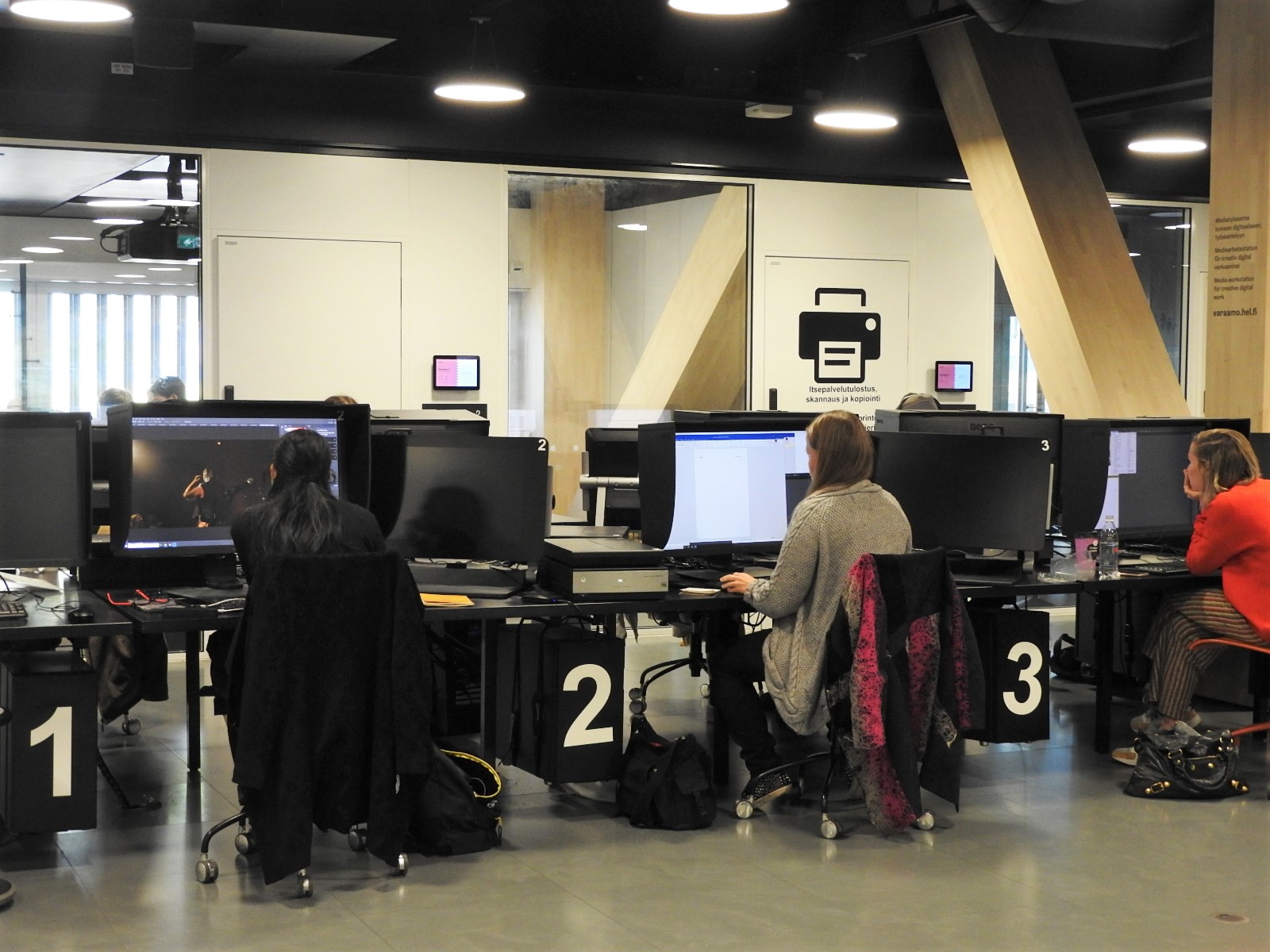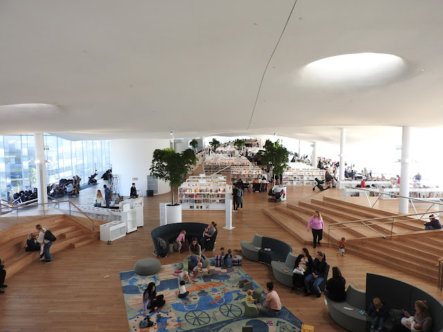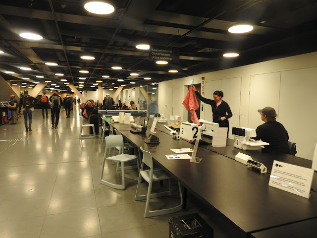Библиотека - это практически наша Новая Голландия под крышей. Общественное пространство,  куда можно придти полежать на полу в тепле. Правда, у нас хипстеры и миллениалы не нашли себе другого занятия кроме как есть. Они уже приходят в Голландию с супами в термосах, раскладывают контейнеры и едят-едят-едят. Здесь же можно еще почитать или порукодельничать. Второй этаж с разными мастерскими и оборудованием самый интересный, хоть и тёмный. Там можно поработать на настоящем компьютере, а не на ноуте или планшете (на этих тоже можно, но с ними сидят на другой площадке).